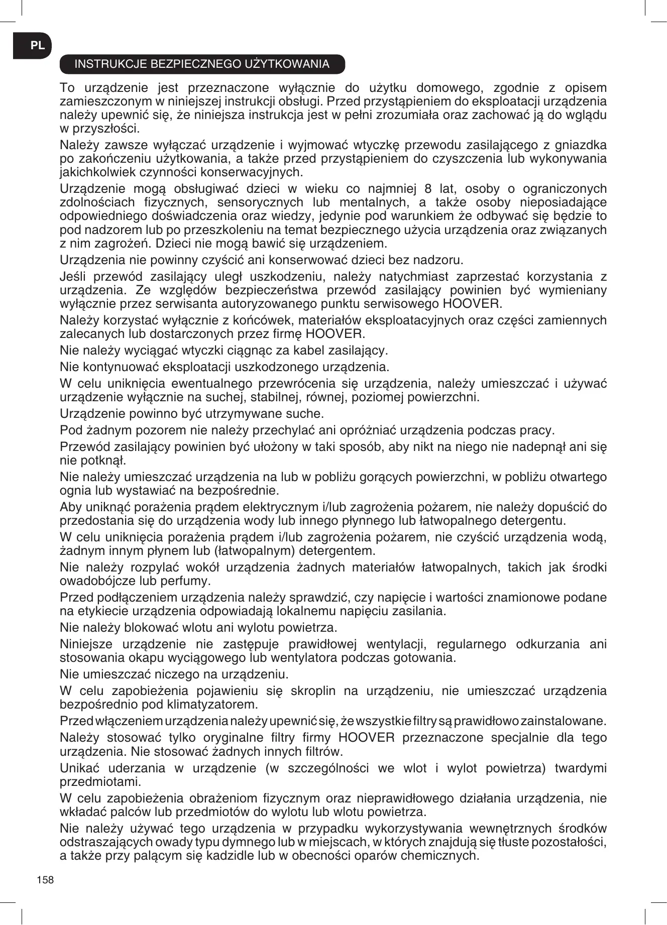 INSTRUKCJA OBSŁUGI HHP55CA011 HOOVER