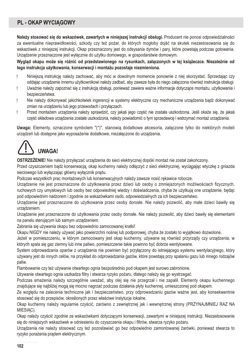 ATTENTION : si vous n'observez pas les recommandations concernant le nettoyage de la hotte et le remplacement des