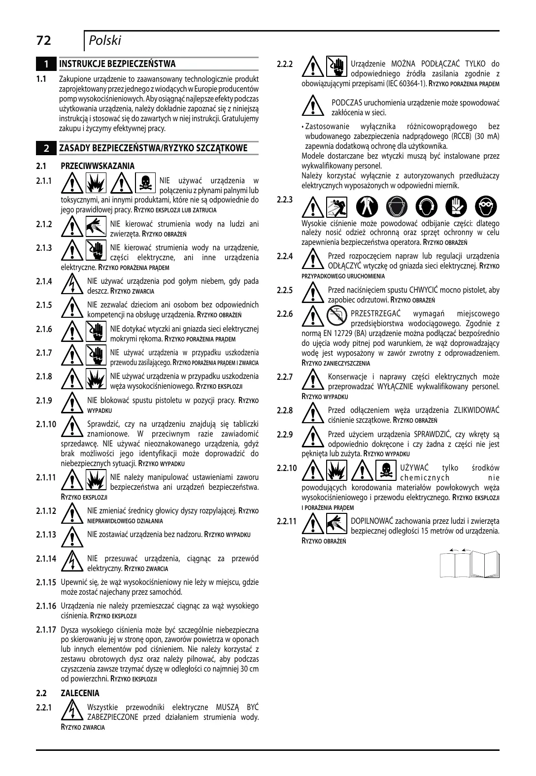 Icône E2 – Elle indique que l’appareil est conçu pour un usage professionnel, c’est-à-dire pour les personnes qui ont de l’expérience, une connaissance technique, normative, législative et qui sont en mesure d’exécuter les opérations nécessaires à l’utilisation et l’entretien de l’appareil.