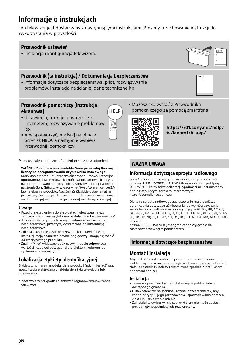 Pobierz instrukcję dla swojego Telewizor w formacie PDF za darmo! Znajdź swoją instrukcję KD-32W800 - SONY i weź swoje urządzenie elektroniczne z powrotem w ręce. Na tej stronie opublikowane są wszystkie dokumenty niezbędne do korzystania z urządzenia. KD-32W800 marki SONY.