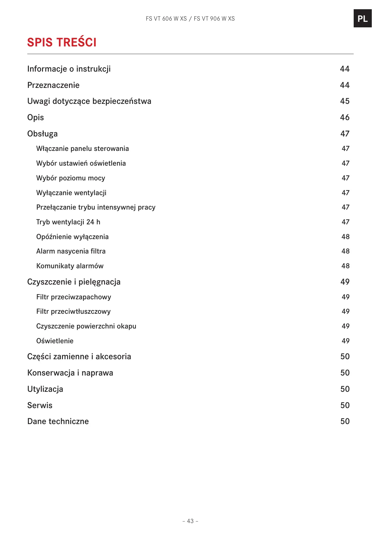 PL FS VT 606 W XS / FS VT 906 W XS Spis treści Informacje o instrukcji