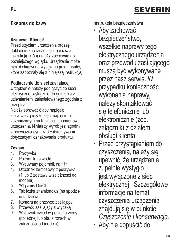 INSTRUKCJA OBSŁUGI KA 9250 SEVERIN