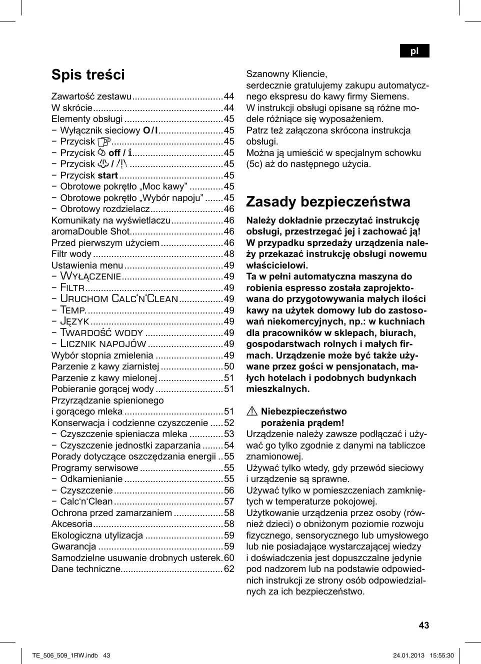 EQ5 - Ekspres do kawy SIEMENS - Bezpłatna instrukcja obsługi