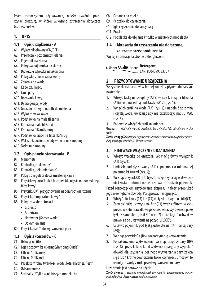 Pobierz instrukcję dla swojego Ekspres do kawy w formacie PDF za darmo! Znajdź swoją instrukcję LA SPECIALISTA EC9155 - DELONGHI i weź swoje urządzenie elektroniczne z powrotem w ręce. Na tej stronie opublikowane są wszystkie dokumenty niezbędne do korzystania z urządzenia. LA SPECIALISTA EC9155 marki DELONGHI.