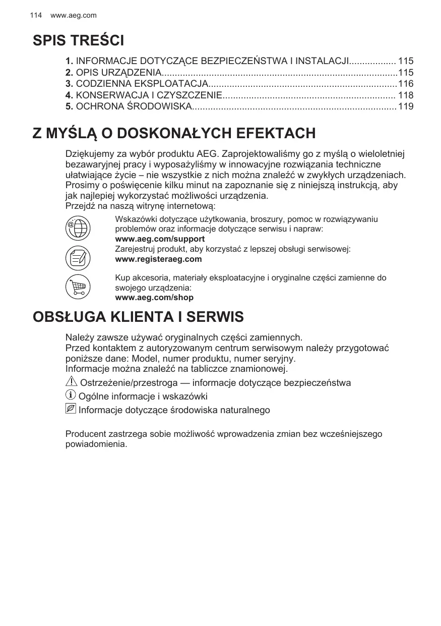 Enregistrer votre produit pour un meilleur service : www.registeraeg.com Acheter des accessoires, consommables et pièces de rechange d’origine pour votre appareil : www.aeg.com/shop