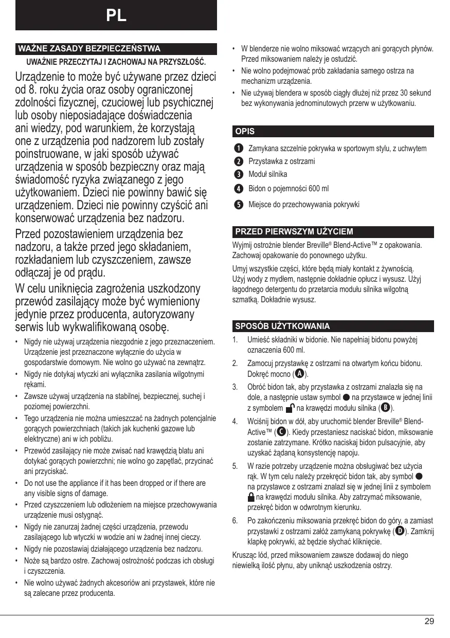 INSTRUKCJA OBSŁUGI VBL097X-01 ACTIVE BREVILLE