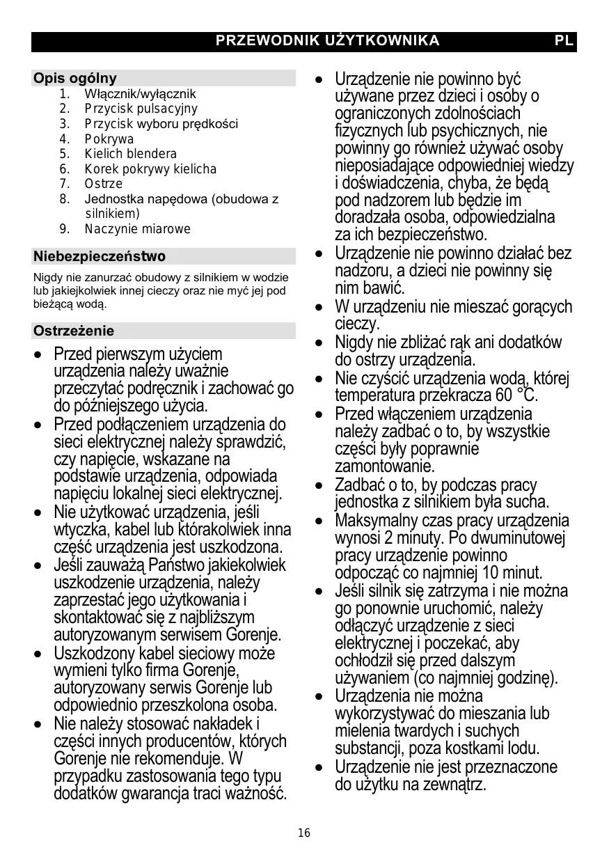 INSTRUKCJA OBSŁUGI B800 ORAB GORENJE