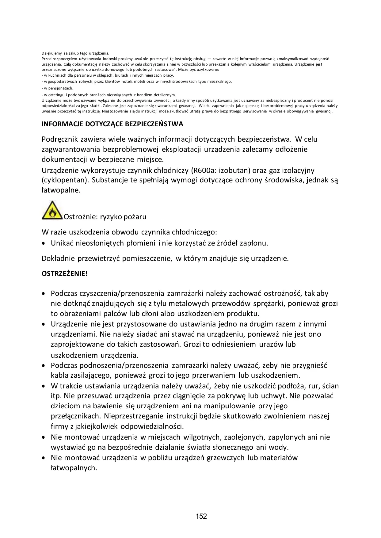 Nous vous suggérons de conserver ces instructions dans un endroit sûr pour une référence ultérieure aisée et une bonne utilisation de l’appareil. Ce réfrigérateur contient un gaz réfrigérant (R600a : isobutane) et un gaz isolant (cyclopentane), qui présentent une compatibilité élevée avec l'environnement mais des propriétés inflammables. Attention : risque d'incendie En cas de dommages du circuit de réfrigérant : • Éviter des flammes ouvertes et des sources d'inflammation. Bien aérer la pièce dans laquelle se trouve l'appareil. AVERTISSEMENT !