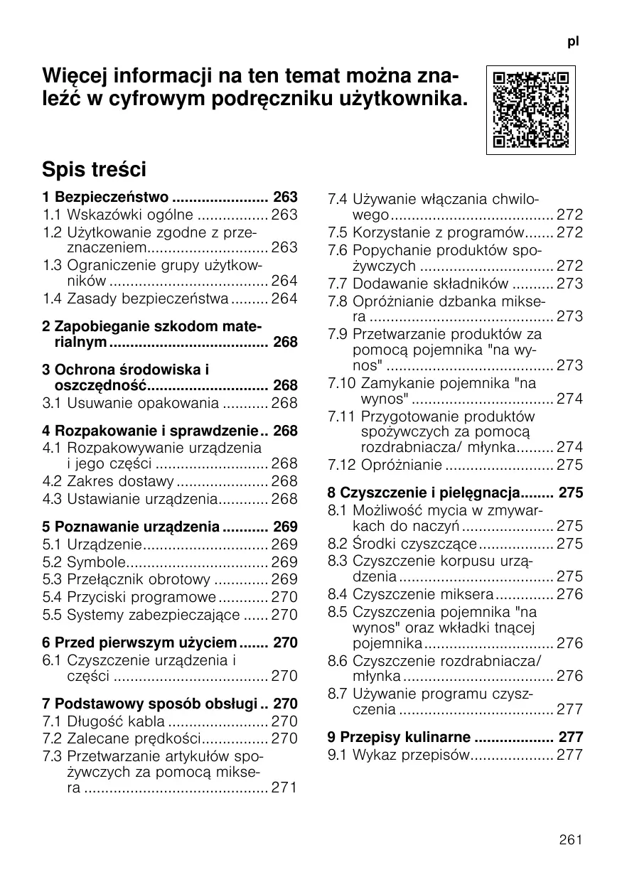 7.7 Rajouter des ingrédients 57 7.8 Vider le bol blender 58 7.9 Transformer les aliments avec la gourde 58 7.10 Fermer la gourde 58 7.11 Transformer les aliments avec l'accessoire hachoir/ broyeur 59 7.12 Vider l'accessoire hachoir/ broyeur 59 8 Nettoyage et entretien 60 8.1 Nettoyage au lave-vaisselle 60 8.2 Produits de nettoyage 60 8.3 Nettoyer l'appareil de base 60 8.4 Nettoyer le bol blender 60 8.5 Nettoyer la gourde et son support de lames 61 8.6 Nettoyer l'accessoire hachoir/broyeur 61 8.7 Utiliser le programme de nettoyage 61 9 Recettes 62 9.1 Liste des recettes 62 ¡ pour mixer et réduire en purée. ¡ pour préparer de la pâte à crêpes, des sorbets, des pâtes à tartiner, des sauces et de la crème glacée. ¡ pour broyer des glaçons. ¡ sous surveillance. ¡ pour un usage domestique privé et dans les pièces fermées d’un domicile, à la température ambiante. ¡ pour les quantités de préparation et durées de traitement habituelles pour un ménage. ¡ jusqu'à une altitude maximale de 2000 m au-dessus du niveau de la mer. ¡ pour mixer les fruits et légumes et préparer des smoothies. Débranchez l’appareil du secteur lorsque : ¡ vous n'utilisez pas l'appareil. ¡ vous ne surveillez pas l’appareil. ¡ vous assemblez l’appareil. ¡ vous démontez l’appareil. ¡ vous nettoyez l’appareil. 49