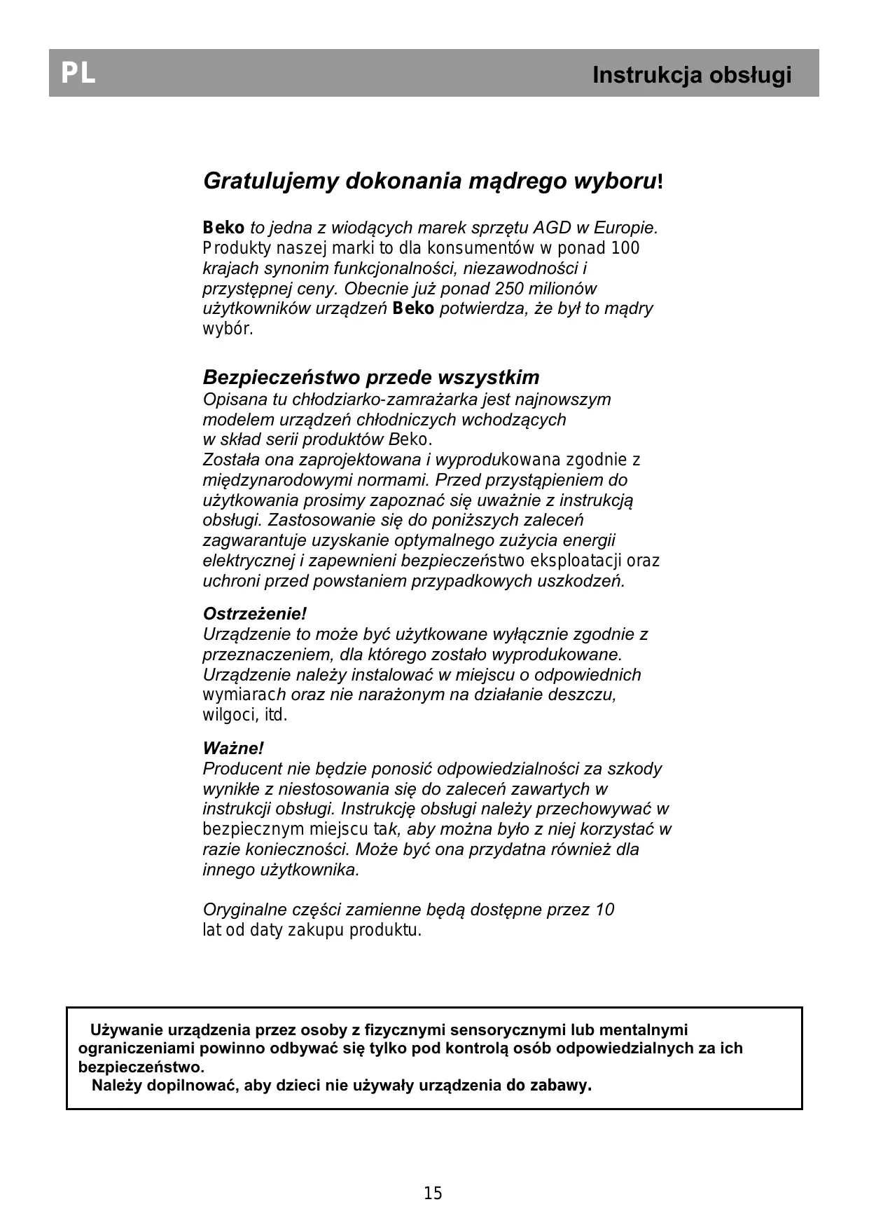 Inne instrukcje BEKO