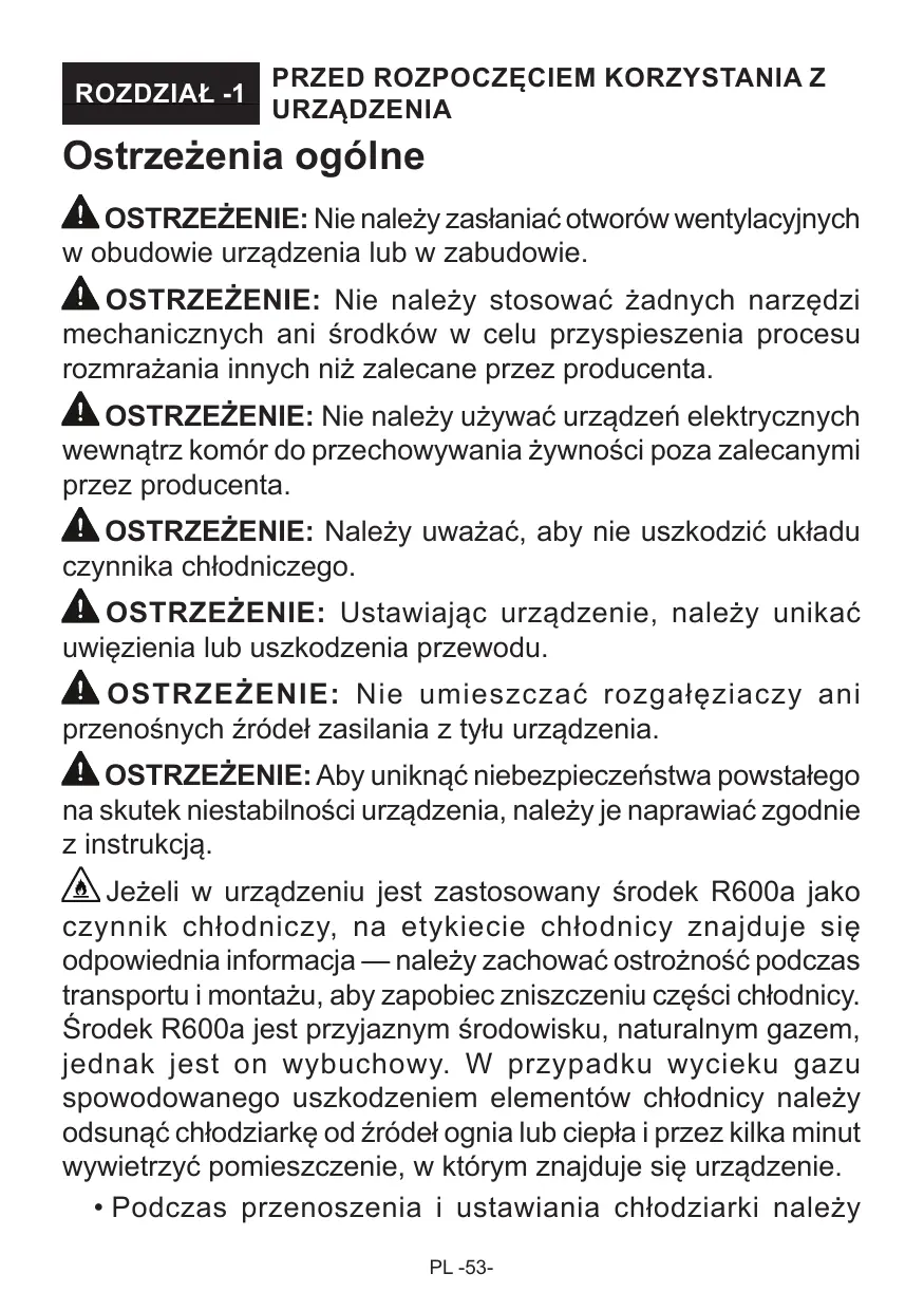 Le Bac Congélateur14 Compartiment fraîcheur extra14 Réglage Flux d’Air15 CustomFlex15 MISE EN GARDE: Ne pas utiliser d'appareils électriques à l'intérieur du compartiment de stockage des denrées, à moins qu'ils ne soient du type recommandé par le fabricant. MISE EN GARDE: Ne pas endommager le circuit de réfrigération. AVERTISSEMENT: Lors du positionnement de l’appareil, s’assurer que le cordon d’alimentation n’est pas coincé ni endommagé. AVERTISSEMENT: Ne pas placer de socles mobiles de prises multiples ni de blocs d’alimentation portables à l’arrière de l’appareil. MISE EN GARDE: Pour éviter tout risque dû à l'instabilité de l'appareil, celui-ci doit être fixé conformément aux instructions suivantes : Si votre appareil utilise le R600a comme réfrigérant (cette information est indiquée sur l’étiquette du réfrigérateur), veiller à éviter d’endommager les éléments du réfrigérateur lors de son transport et de son installation. Le R600a est un gaz naturel respectueux de l’environnement, mais il est explosif. En cas de fuite résultant d’un dommage occasionné aux éléments du réfrigérateur, déplacer ce dernier afin de l’éloigner de toute flamme nue ou source de chaleur et aérer la pièce où se trouve l’appareil pendant quelques minutes. FR -4-