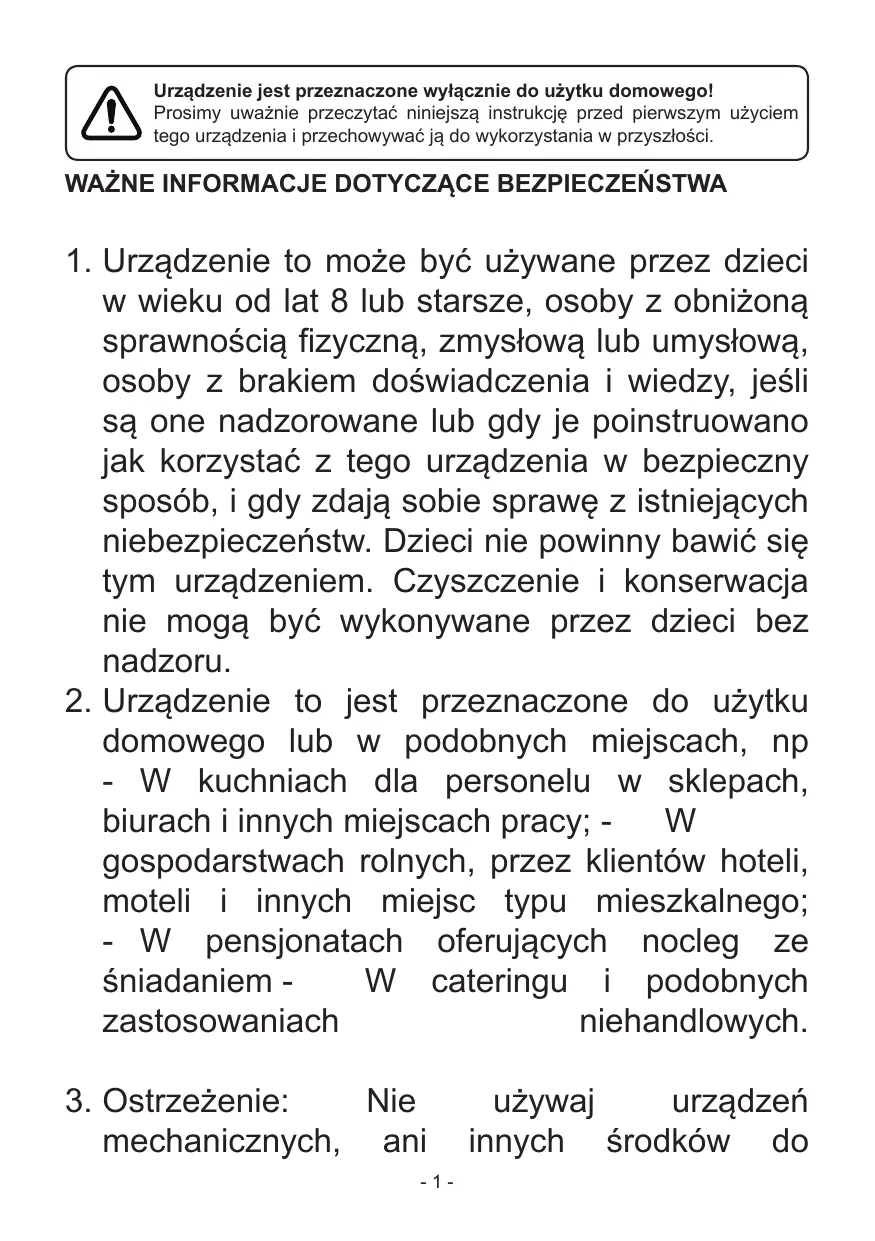 2. Cet appareil est destiné à un usage domestique et dans des endroits similaires, tels que : - les espaces cuisine des boutiques, les bureaux et autres environnements de travail ; - les maisons de campagne, les chambres d’hôtel, de motel et autres types de résidence ; - les chambres d’hôtes ; - les restaurants et les endroits similaires de vente autre qu’au détail 3. Avertissement : N’utilisez pas d’appareils mécaniques ou des moyens autres que ceux recommandés par le fabricant pour accélérer le processus de dégivrage. -1-