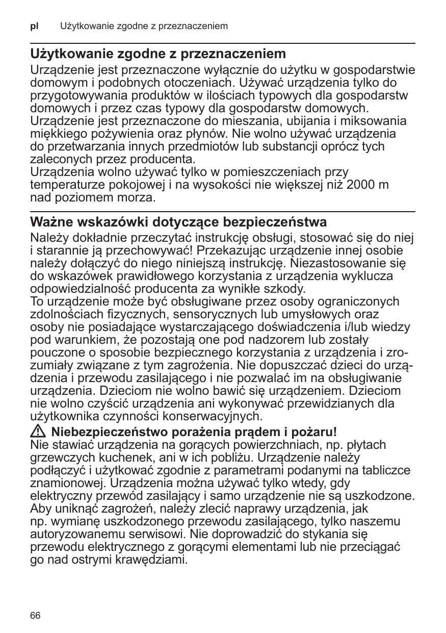 W Risque de chocs électriques et d’incendie Ne pas poser l’appareil sur des surfaces chaudes (tables de cuisson par ex.) ou à proximité de celles-ci. Brancher et utiliser l’appareil uniquement en conformité avec les indications figurant sur la plaque signalétique. N’utiliser l’appareil que si son cordon d’alimentation et l’appareil lui-même ne présentent aucun dommage. Afin d’écarter tout danger, seul notre service après-vente est habilité à réparer l’appareil, comme par exemple, procéder au remplacement d’un cordon d’alimentation endommagé. Ne pas mettre le cordon d’alimentation en contact avec des éléments brûlants et ne pas le faire glisser sur des arêtes vives. Ne jamais plonger l’appareil de base dans des liquides, ne jamais le tenir sous l’eau du robinet et ne pas le laver au lave-vaisselle. Ne jamais utiliser de nettoyeur à vapeur. Ne pas utiliser l’appareil avec les mains humides. 13