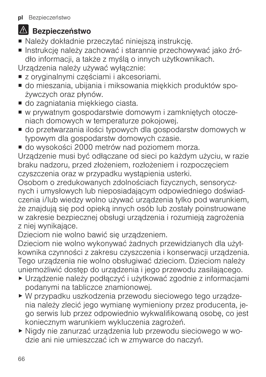 ¡ pour mélanger, battre et mixer des aliments tendres et des liquides. ¡ pour pétrir de la pâte molle. ¡ pour un usage domestique privé et dans les pièces fermées d’un domicile, à la température ambiante. ¡ pour les quantités de préparation et durées de traitement habituelles pour un ménage. ¡ à une hauteur maximale de 2000 m au-dessus du niveau de la mer. L’appareil doit toujours être débranché du secteur, après chaque utilisation, lorsqu’il n’est pas sous surveillance, lorsqu’il doit être monté ou démonté, avant de le nettoyer et en cas de panne. Cet appareil peut être utilisé par des personnes aux capacités physiques, sensorielles ou mentales réduites ou des personnes inexpérimentées, à condition qu'elles soient surveillées ou qu'elles aient été informées de l'utilisation de l'appareil et qu'elles comprennent les risques inhérents à son usage. Les enfants ne sont pas autorisés à jouer avec l'appareil. Le nettoyage et l’entretien de l'appareil ne doivent pas être effectués par des enfants. L'appareil ne doit pas être utilisé par des enfants. Les enfants doivent être tenus à distance de l’appareil et du cordon d’alimentation secteur. ▶ Pour le raccordement et l’utilisation de l’appareil, respectez impérativement les indications figurant sur la plaque signalétique. ▶ Afin d’écarter tout danger quand le cordon d’alimentation secteur de cet appareil est endommagé, seul le fabricant ou son service après-vente ou toute autre personne de qualification équivalente est habilité à le remplacer. 17