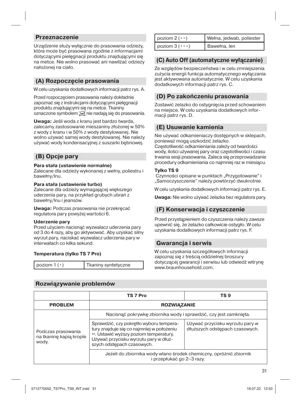 Zostawic zelazko do ostygnięcia przy schowaniem na.), W celu uzyskania dodatkowych infor
