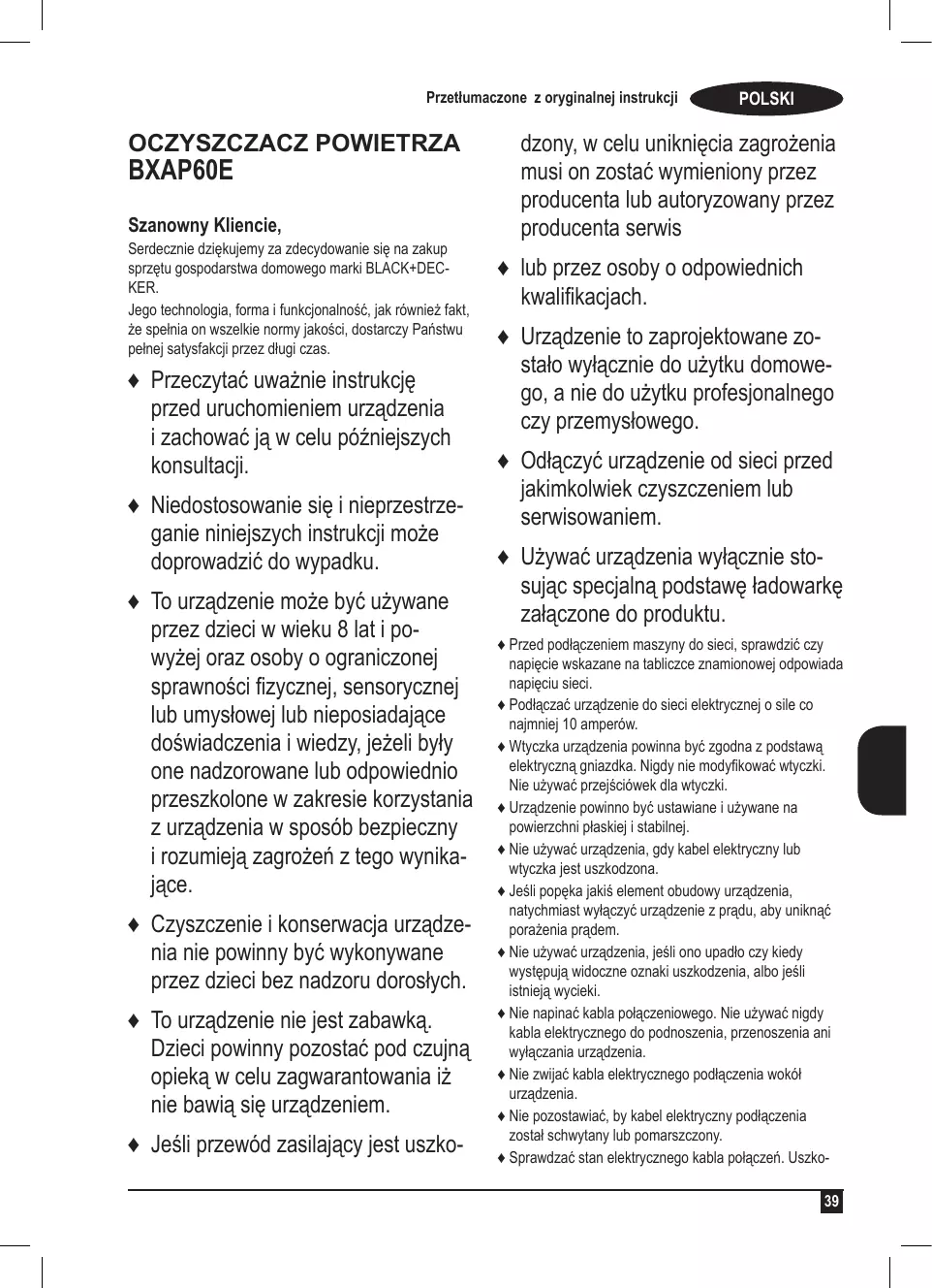INSTRUKCJA OBSŁUGI BXAP60E BLACK & DECKER