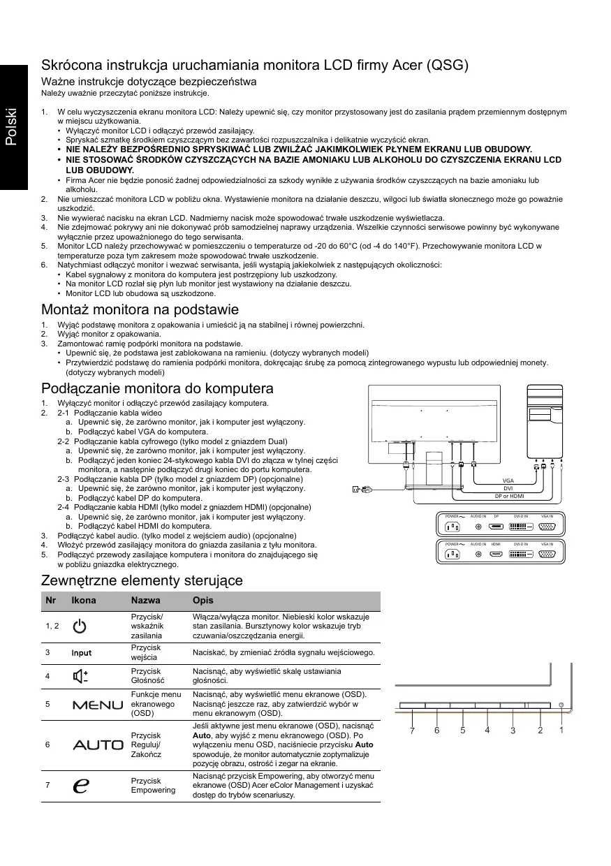 VA220HQ - Monitor ACER - Bezpłatna instrukcja obsługi