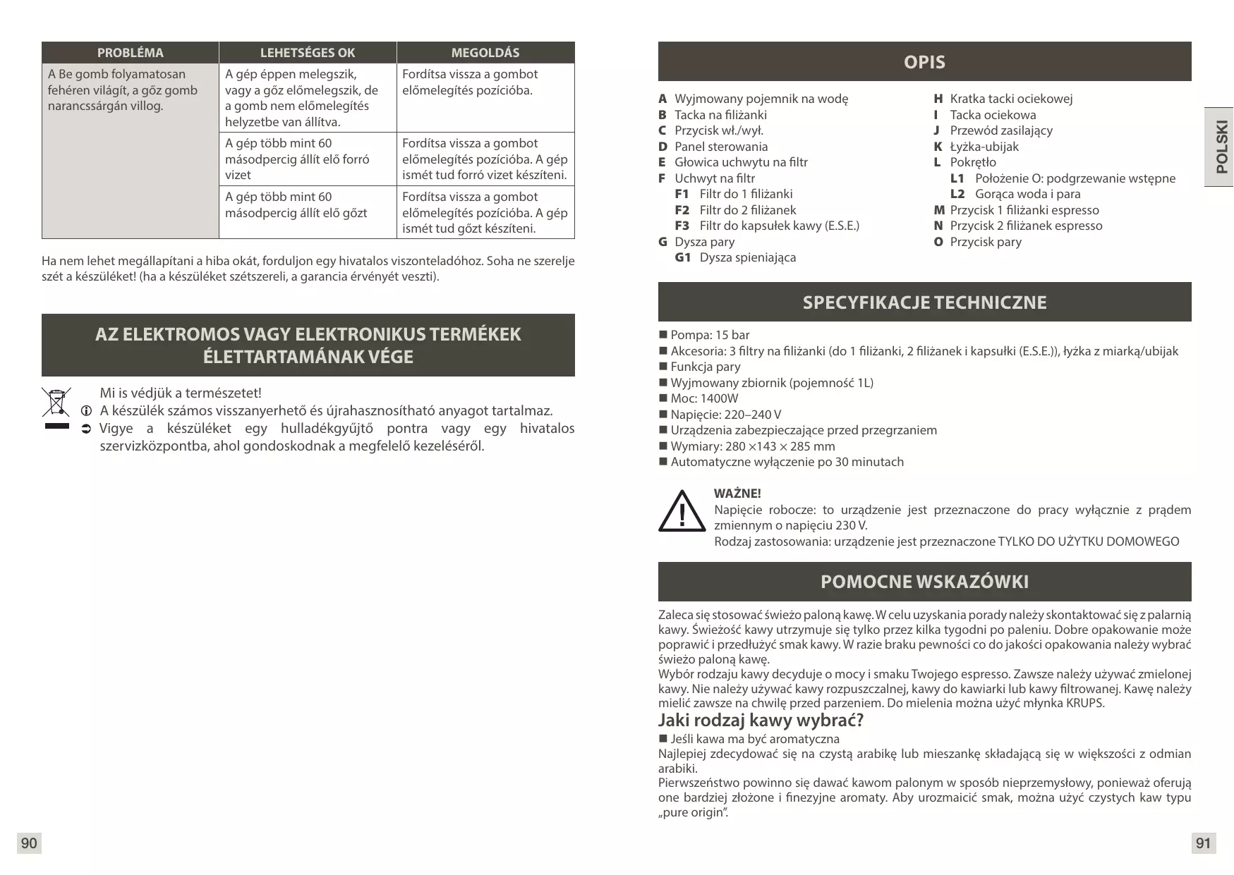 XP442C11 - Ekspres do kawy KRUPS - Bezpłatna instrukcja obsługi