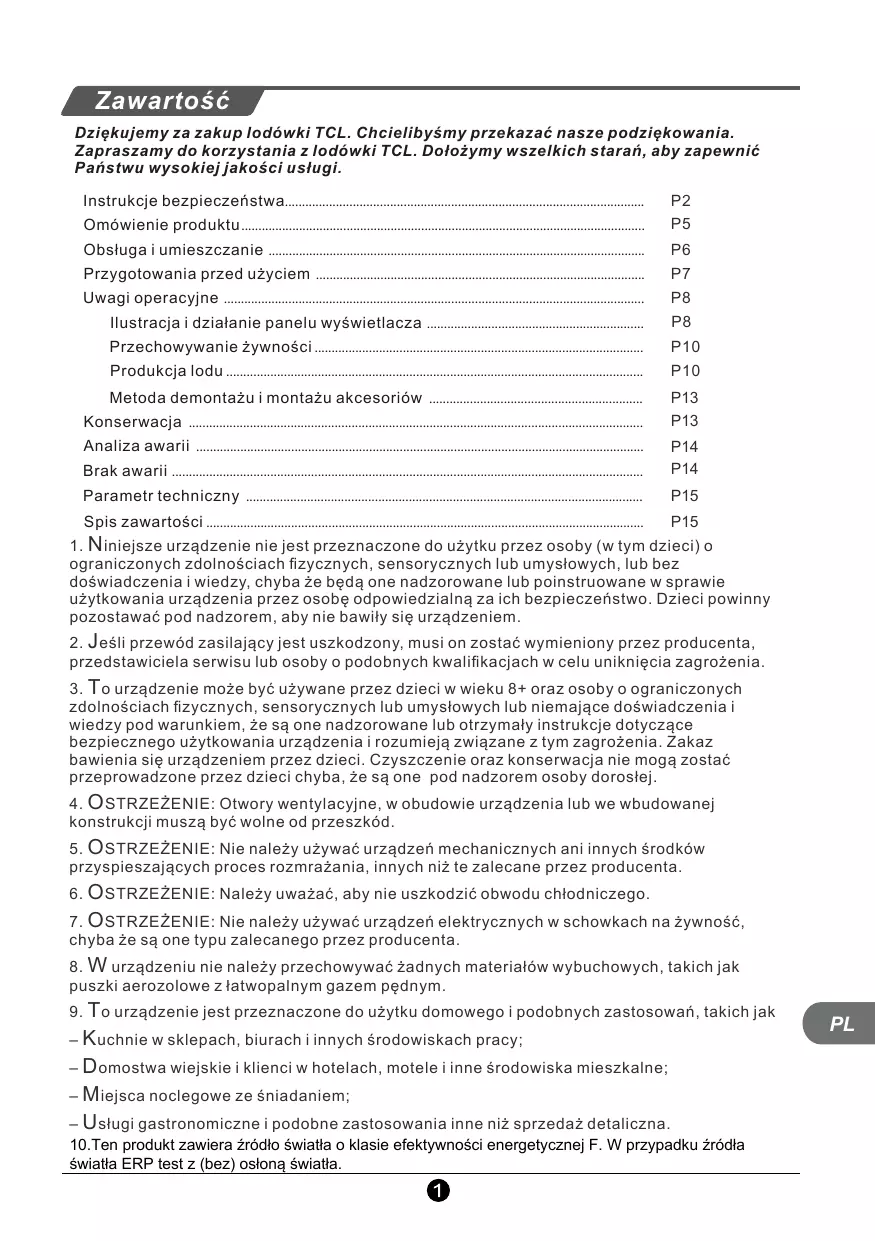 RF282BSE0 - Lodówka TCL - Bezpłatna instrukcja obsługi