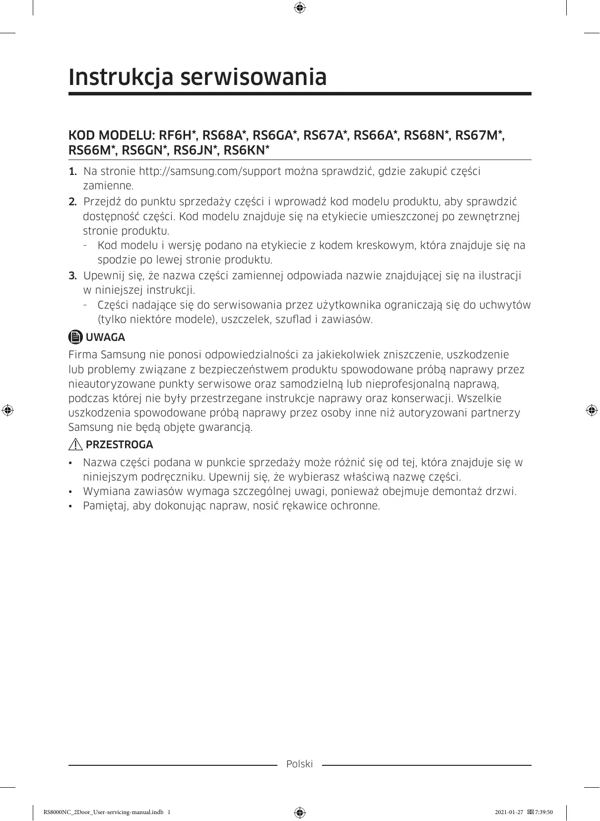 INSTRUKCJA OBSŁUGI RS67A851059 SAMSUNG