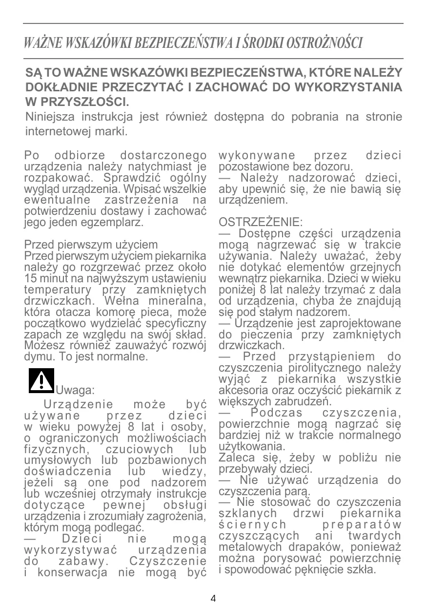 élevée. afin de roder l’appareil. La laine minérale qui entoure la cavité du four peut dégager au début une odeur particulière dûe à sa composition. De même, vous constaterez peut-être un dégagement de fumée. Tout ceci est normal.