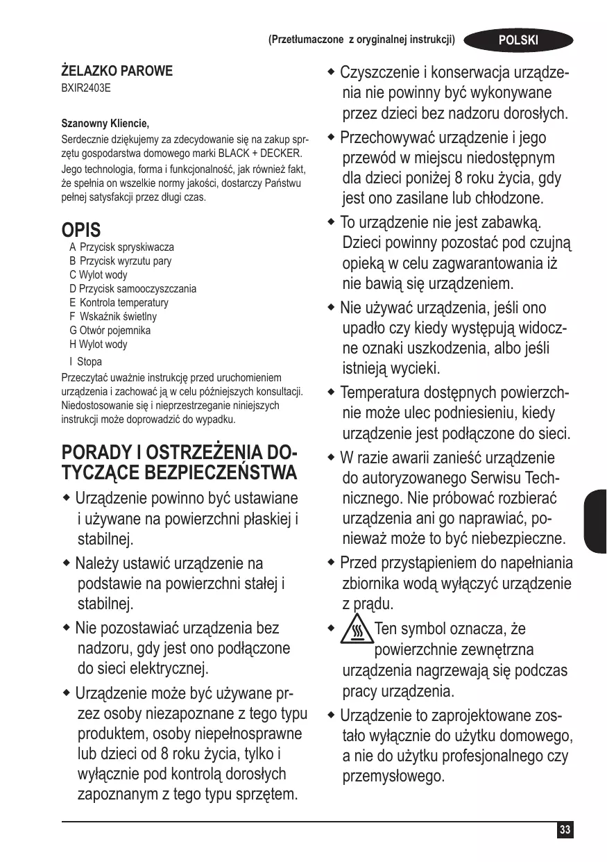 AVAPBXIR2403E - żelazko BLACK & DECKER - Bezpłatna instrukcja obsługi