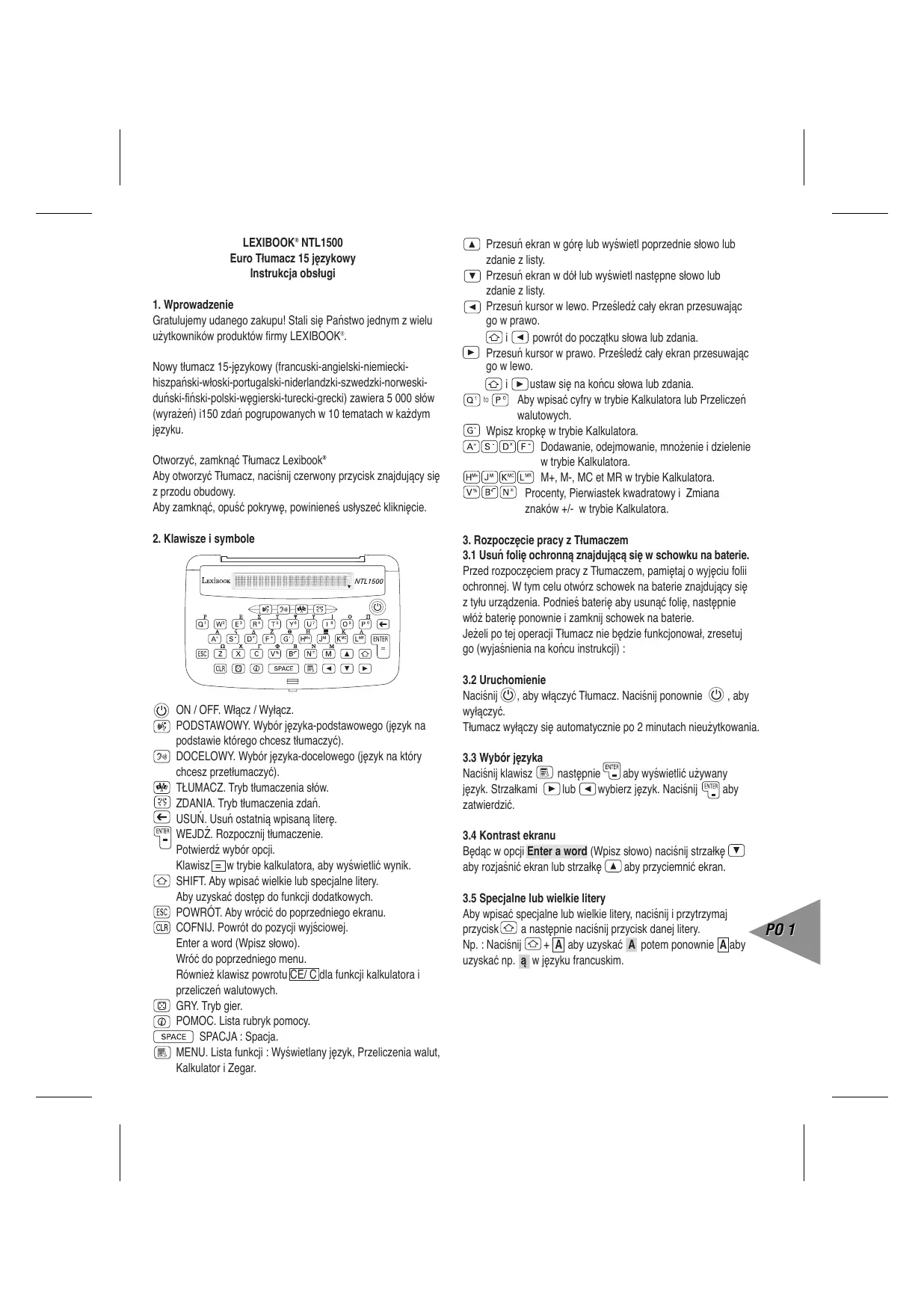 LfNTL 1500 - Tłumacz elektroniczny LEXIBOOK - Bezpłatna instrukcja obsługi