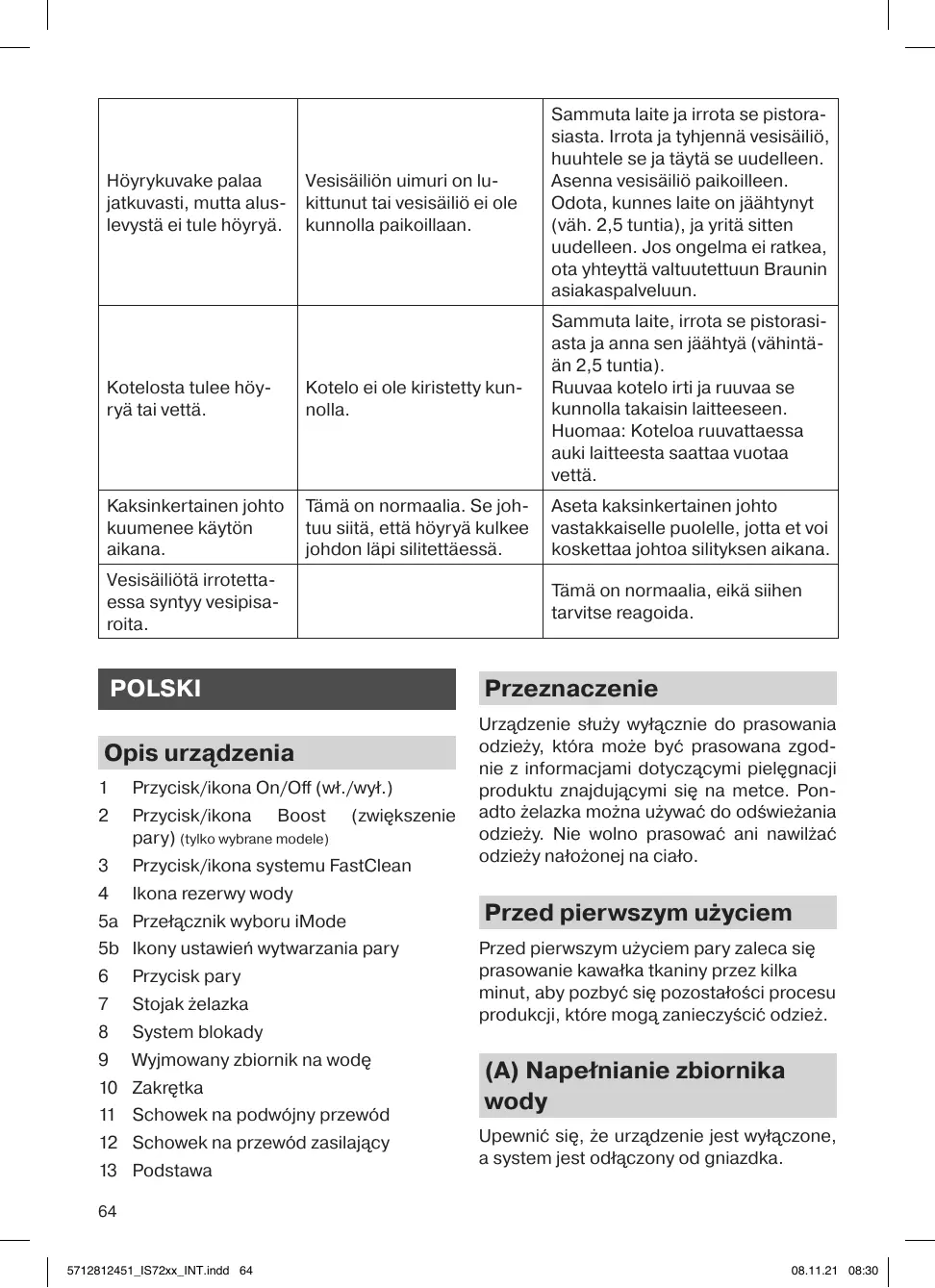 IS7262GY - Generateur vapeur BRAUN - Bezpłatna instrukcja obsługi