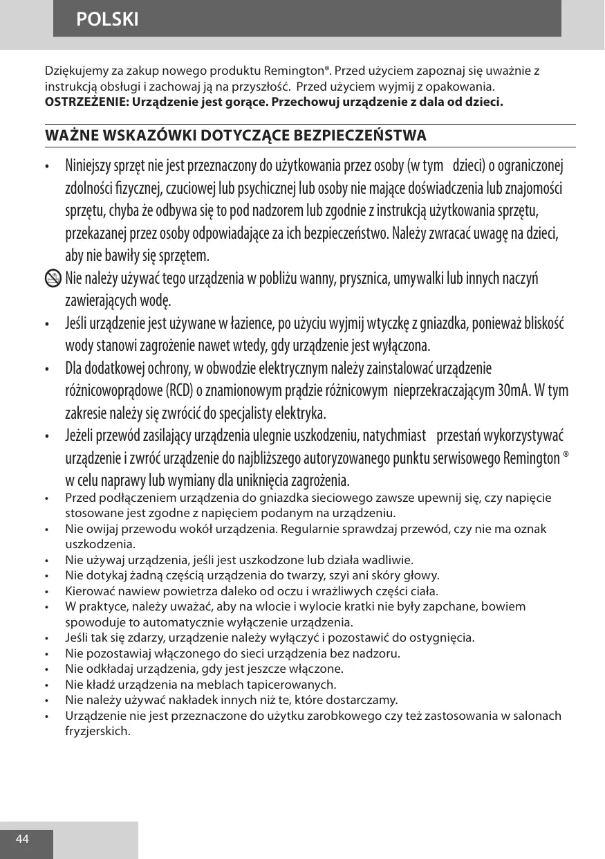 D6077 - Suszarka do włosów REMINGTON - Bezpłatna instrukcja obsługi