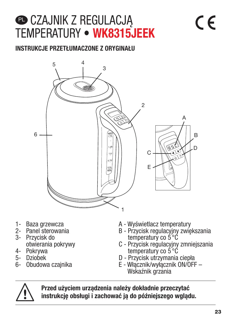 INSTRUKCJA OBSŁUGI Bouilloire température réglable ELSAY