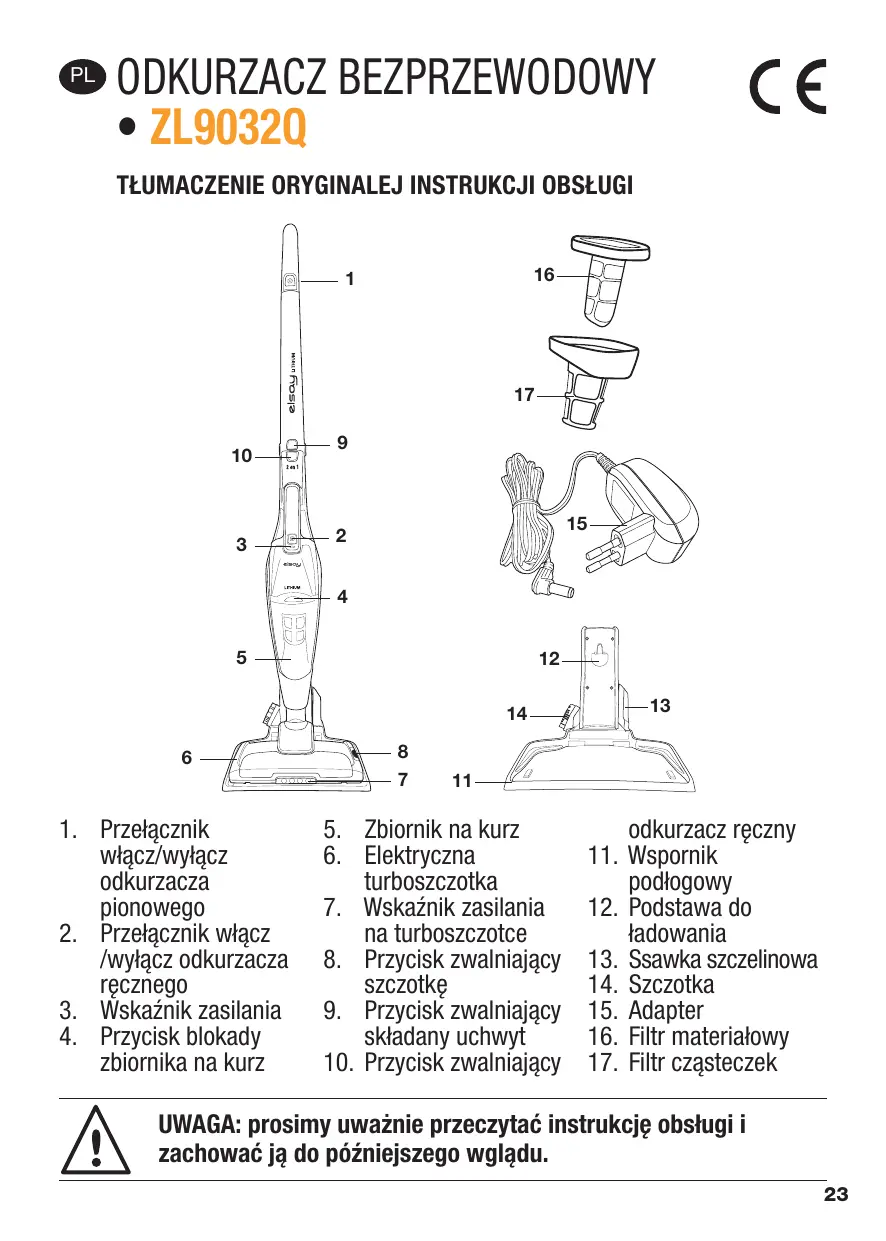 Pobierz instrukcję dla swojego Odkurzacz pionowy w formacie PDF za darmo! Znajdź swoją instrukcję 2 en 1 - ZL9032Q - ELSAY i weź swoje urządzenie elektroniczne z powrotem w ręce. Na tej stronie opublikowane są wszystkie dokumenty niezbędne do korzystania z urządzenia. 2 en 1 - ZL9032Q marki ELSAY.