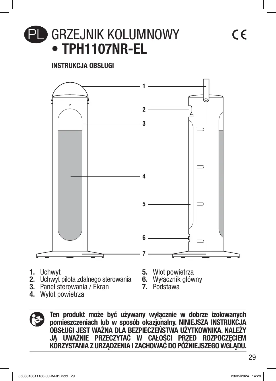INSTRUKCJA OBSŁUGI Tour Soufflante Céramique - 2000W - TPH1107NR-EL ELSAY