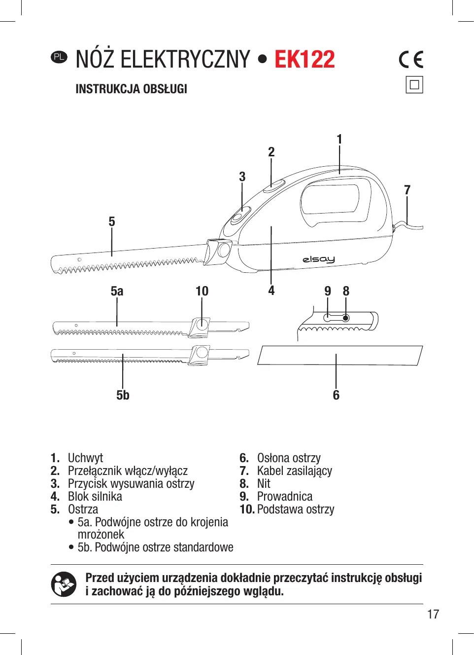 EK122 - Nóż elektryczny ELSAY - Bezpłatna instrukcja obsługi