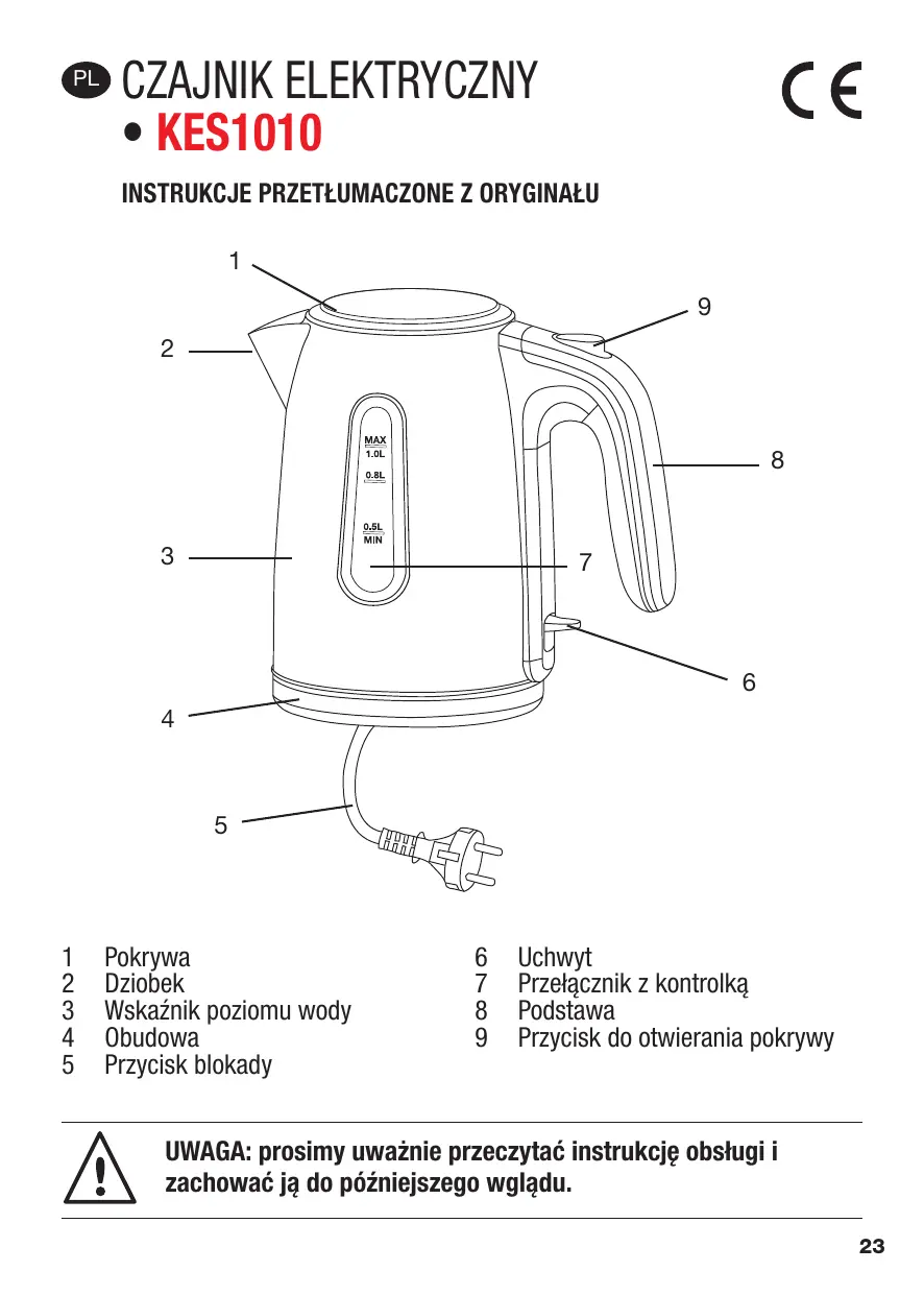 INSTRUKCJA OBSŁUGI 1L - KES1010 ELSAY