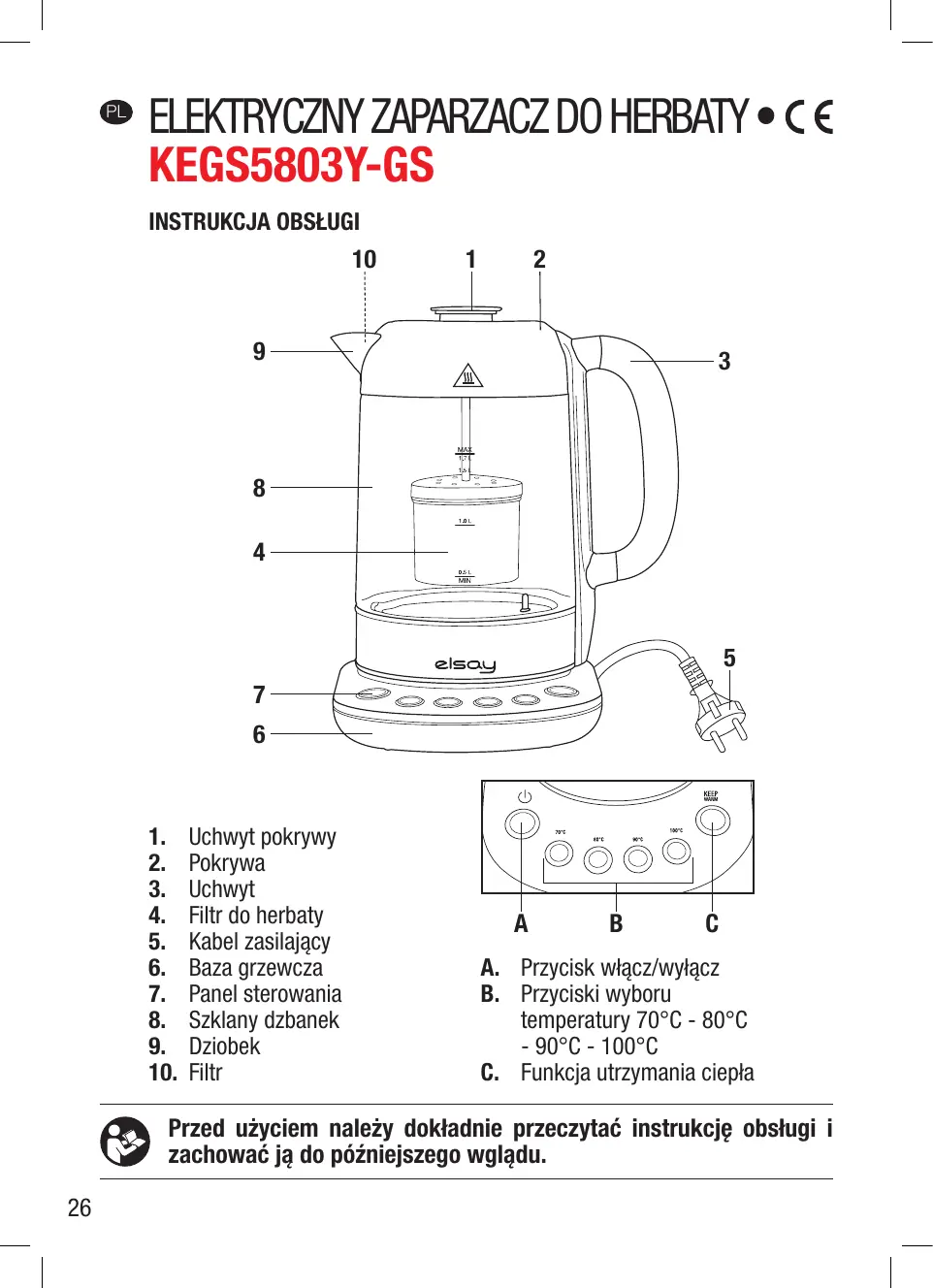 1,7L - KEGS5803Y-GS - Czajnik do herbaty ELSAY - Bezpłatna instrukcja obsługi