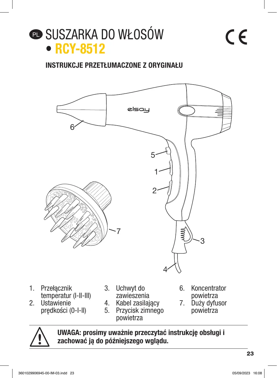 RCY-8512 - Suszarka do włosów ELSAY - Bezpłatna instrukcja obsługi
