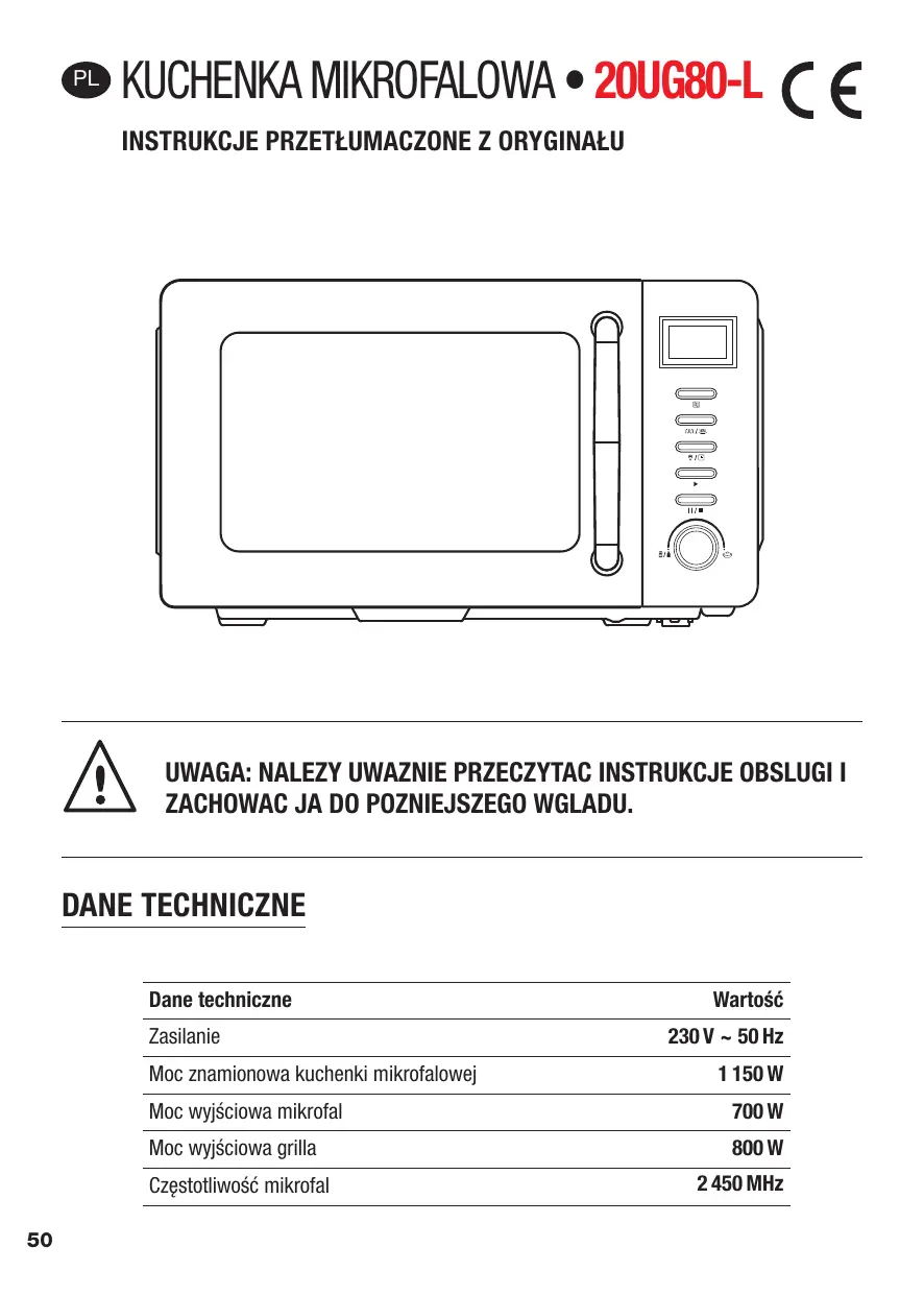 20UG80-L - Mikrofale ELSAY - Bezpłatna instrukcja obsługi