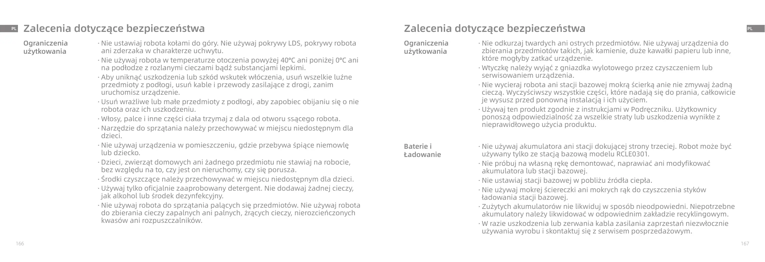 - Nie uzywaj robota do sprzatania palacych sie przedmiotéw. Nie uzywaj robota