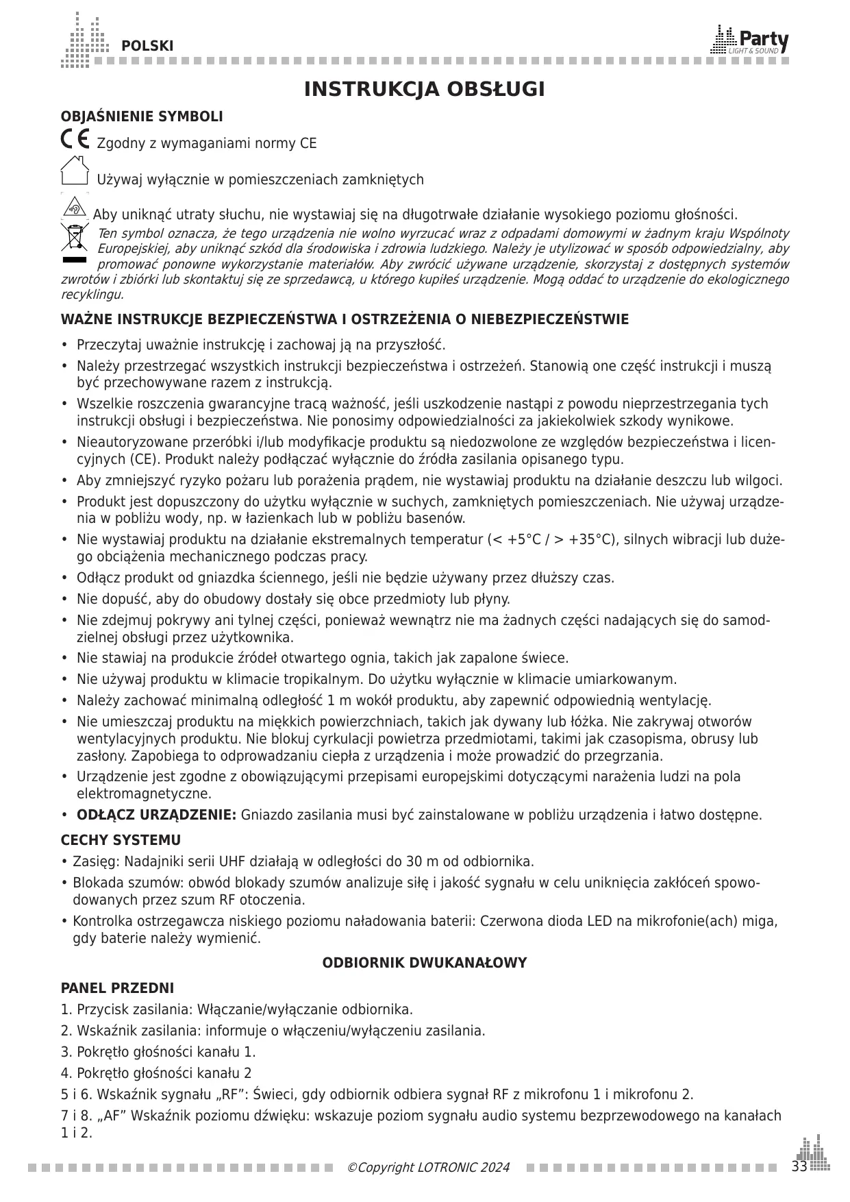 INSTRUKCJA OBSŁUGI PARTY-200UHF PARTY LIGHT&SOUND
