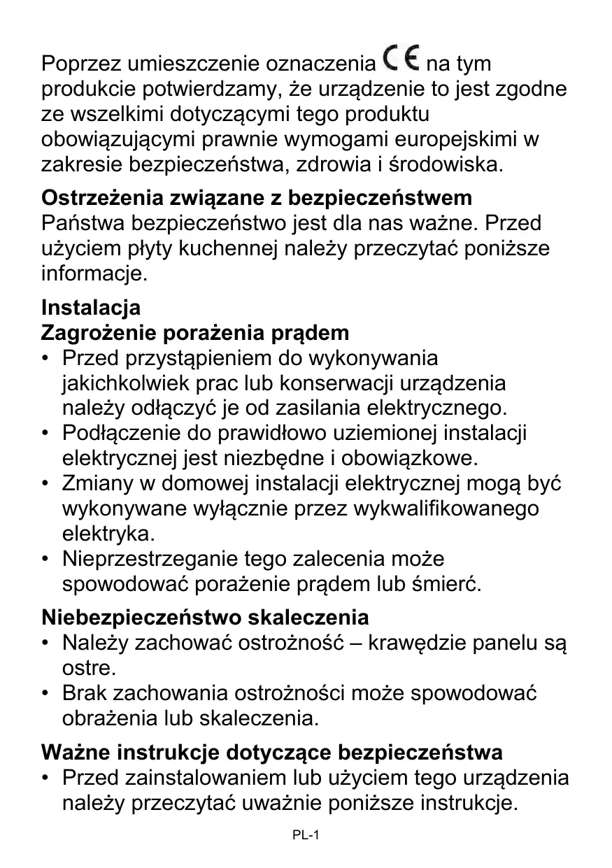 CIS 633 MCTT - Table induction CANDY - Bezpłatna instrukcja obsługi
