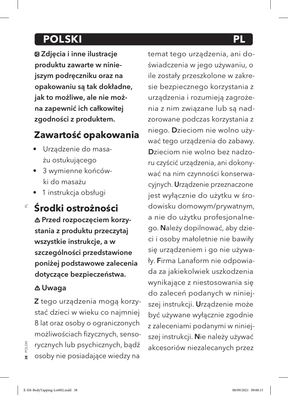 INSTRUKCJA OBSŁUGI BODY TAPPING LA110222 LANAFORM