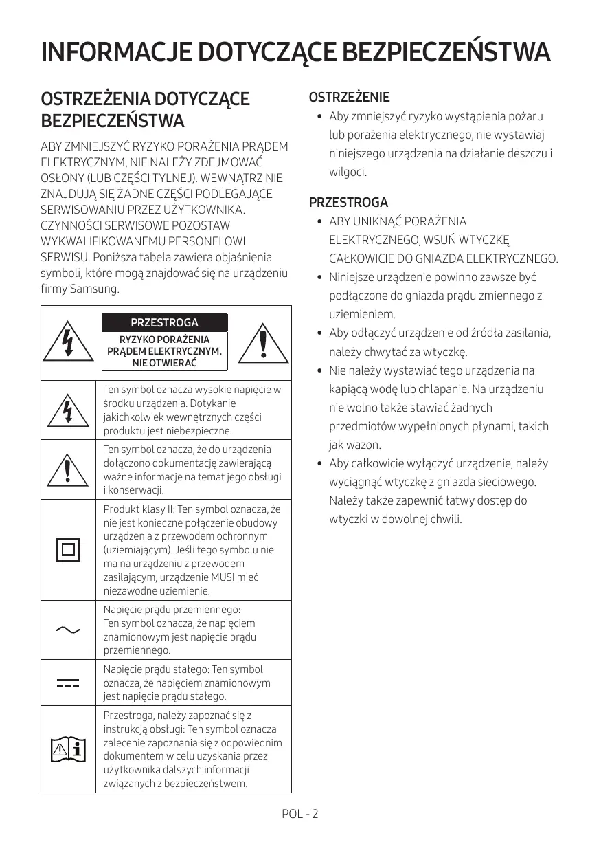 Przestroga, naleéy zapozna sie z instrukcja obstugi: Ten symbol oznacza zalecenie zapoznania sie z odpowiednim dokumentem w celu uzyskania przez uéytkownika dalszych informecii zwigzanych 2 bezpieczeñstwem