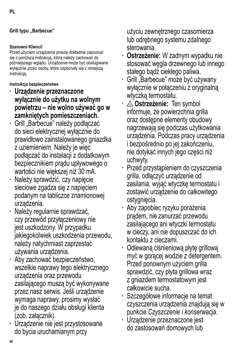 l'eau savonneuse. Assurez-vous que la grille de cuisson avec le raccord thermostat est absolument sèche avant une nouvelle utilisation du gril.