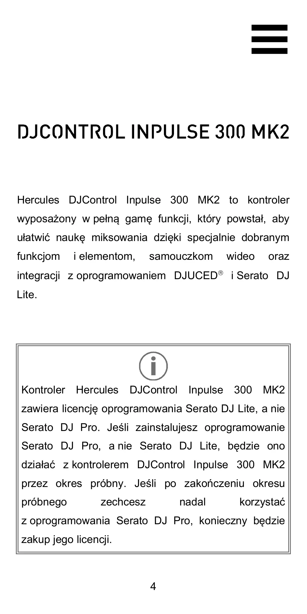 Znajdź bezpłatnie instrukcję urządzenia INPULSE 300 MK2 HERCULES w formacie PDF.