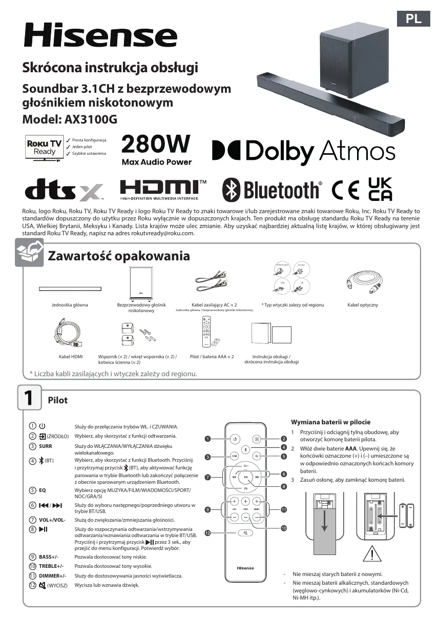 AX3000G - Listwa dźwiękowa HISENSE - Bezpłatna instrukcja obsługi