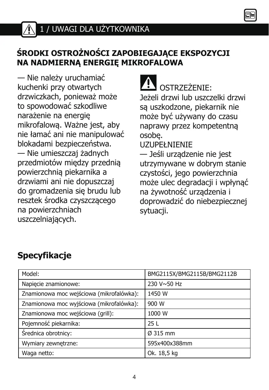 INSTRUKCJA OBSŁUGI BMG2115B BRANDT
