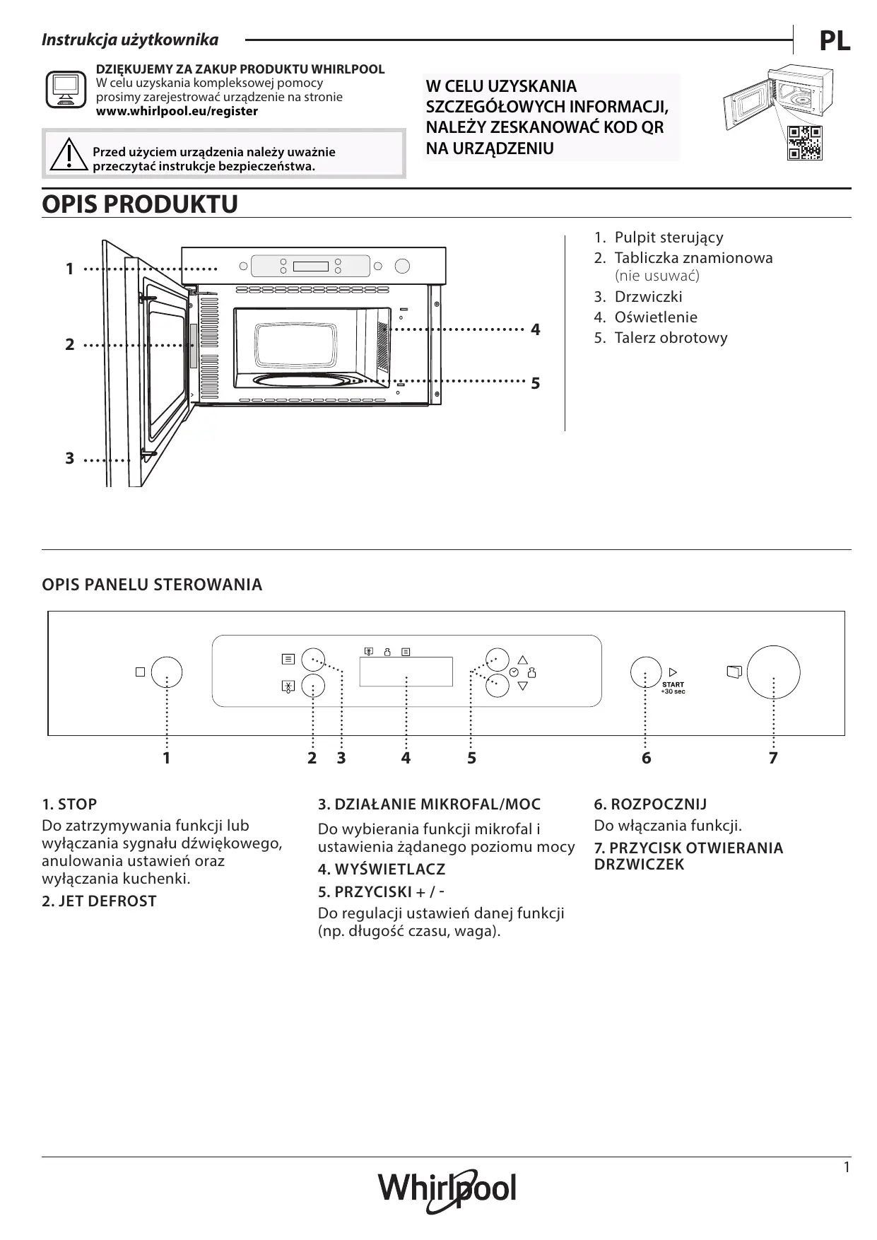 MBNA900X - Micro-ondes encastrable WHIRLPOOL - Bezpłatna instrukcja obsługi
