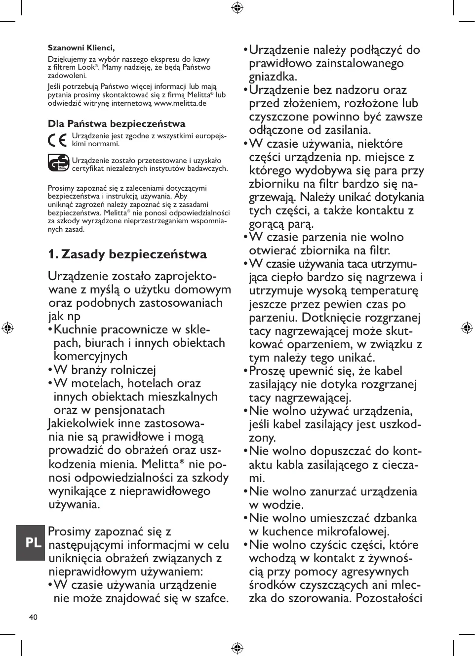 Veuillez lire les consignes de sécurité et le mode d'emploi dans leur intégralité. Afin d'éviter tout danger, respectez les consignes de sécurité ainsi que le mode d'emploi. Melitta® décline toute responsabilité en cas de dommages résultant d'un non-respect des consignes.