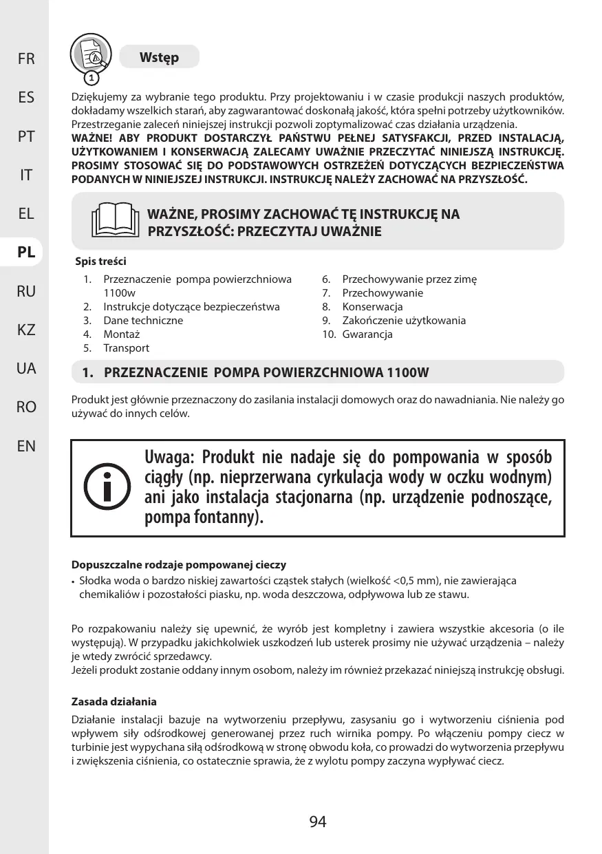 INSTRUKCJA OBSŁUGI 1100 jet ic-3 4800 l/h STERWINS