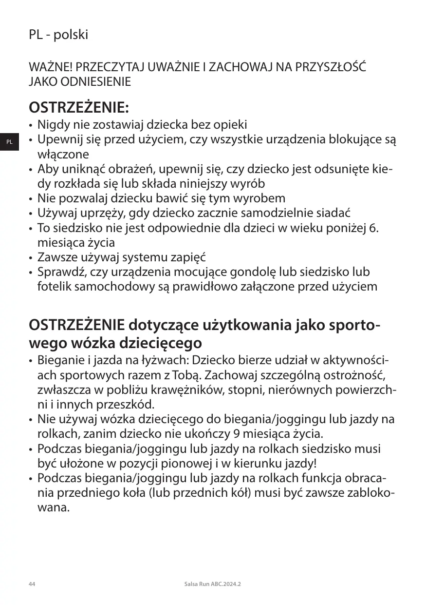 INSTRUKCJA OBSŁUGI SALSA RUN ABC DESIGN